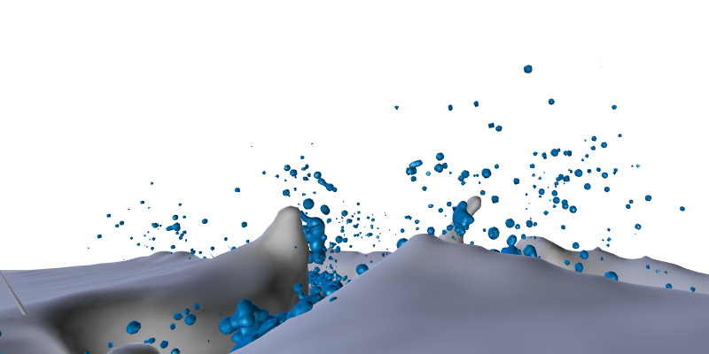 When simulating particles fluids, the cumbersome of computation time and viewport lag is always the tricky part. Currently there are two well-known ways to mesh the particles: metaballs, and the CubeSurfer addon.